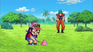Aqui é o episódio 69 de Dragon Ball Super homenageando os 35 anos de Dr. Slump!